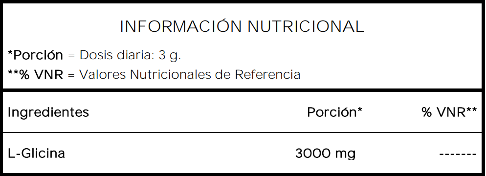 LA MEJOR GLICINA: Cada dosis contiene 3000 mg de L-Glicina. Nuestra Glicina es la molécula Levógira (L-Glicina), la más frecuente en piel, cabello, músculos y tendones.
