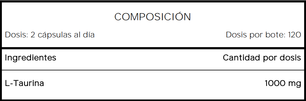 LA MEJOR TAURINA: Cada dosis (2 cápsulas) está elaborada con 1000 mg de L-Taurina pura.